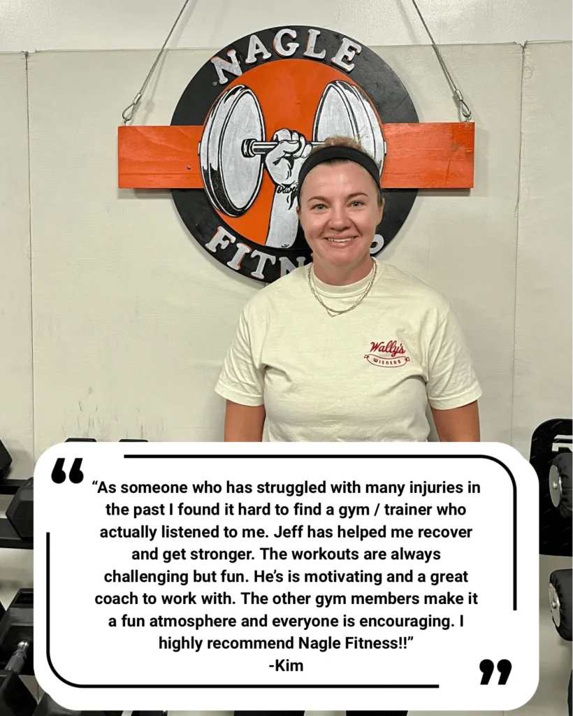 I have been working out with Jeff for 3 years. Jeff is a knowledgeable , dedicated coach. He puts in hard work with each clients personal needs. As someone who has struggled with many injuries in the past I found it hard to find a gym / trainer who actually listened to me. Jeff has helped me recover and get stronger. The workouts are always challenging but fun. He’s is motivating and a great coach to work with. The other gym members make it a fun atmosphere and everyone is encouraging. I highly recommend Nagle Fitness!!
